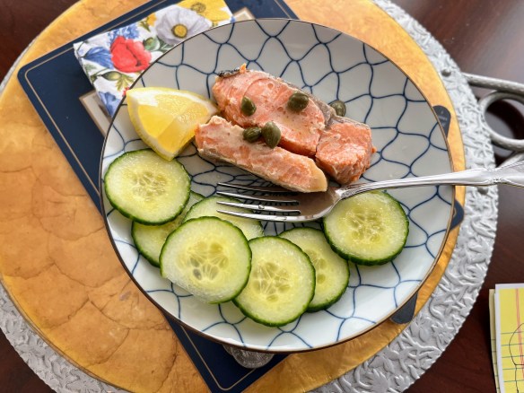 I still take a few pictures of what Buck and I eat for dinner, or sometimes lunch, mainly due to that old habit from the blog years. When I looked at my recent photo gallery, I couldn’t help laughing. Plate after plate, they are all so uncrowded!